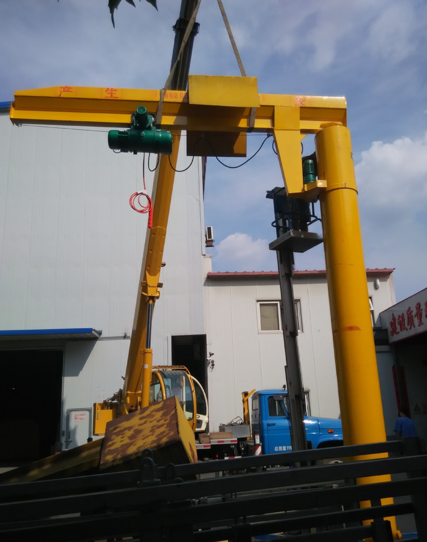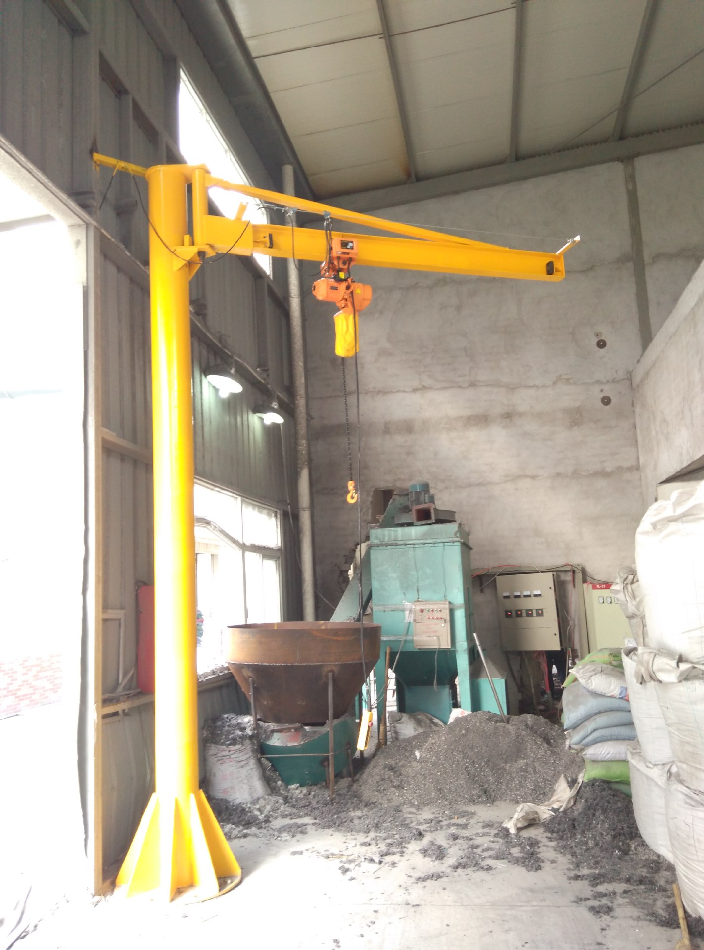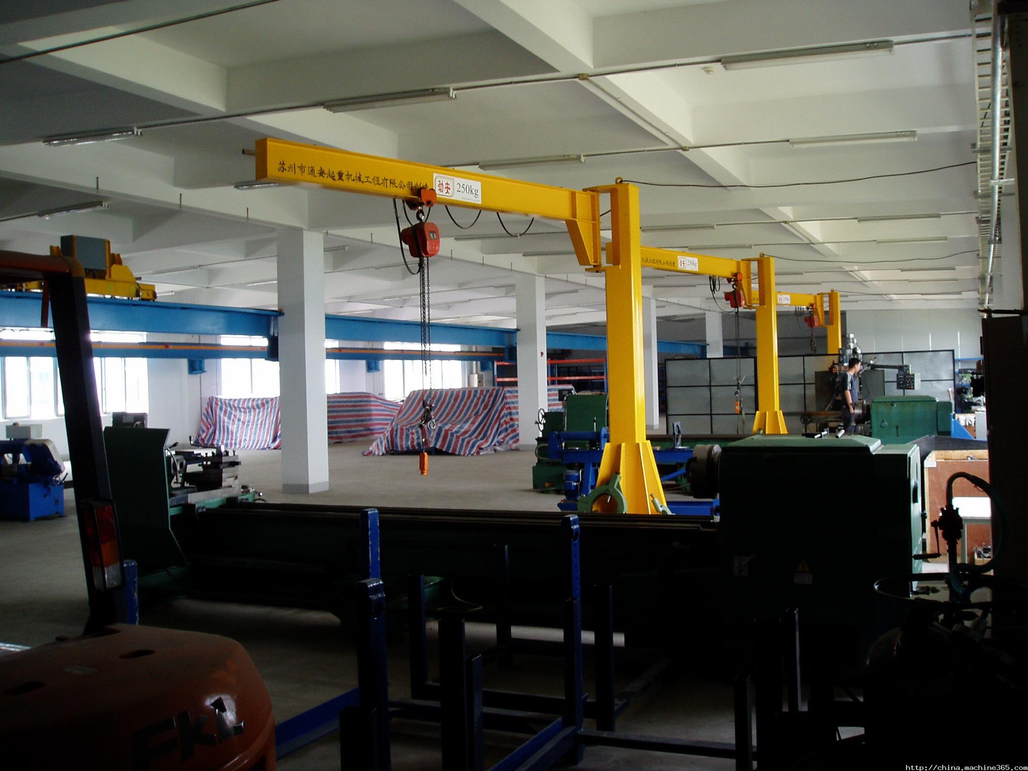 起升、運行和回轉(zhuǎn)均為電動,結(jié)構(gòu)緊湊,適用于低凈空,回轉(zhuǎn)角度360°或≤270°電動定柱式起重機,設(shè)計符合中國機械行業(yè)標(biāo)準(zhǔn),工作強度為中型,滿足JB/T 8906-1999的要求。起重機旋臂為工字鋼結(jié)構(gòu),經(jīng)久耐用;結(jié)構(gòu)尺寸小,特別有利于提高吊鉤行程。