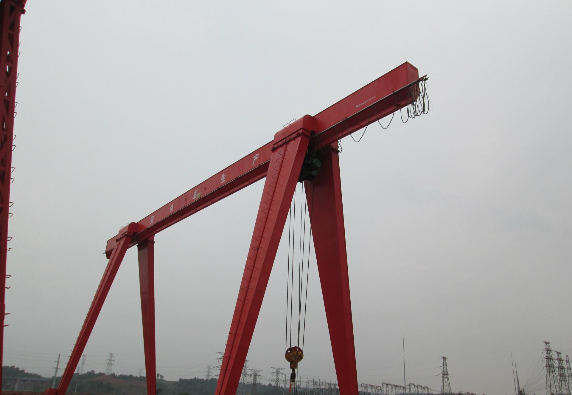 MH型-電動葫蘆門式起重機-MH型-電動葫蘆門式起重機本機是與CD1、MD1型電動葫蘆配套使用,適用于露天作業的固定跨間,本機禁止吊運易燃易爆物品,根據用戶要求還可制成單端外伸懸臂式或無懸臂式結構。操作方式地面和操作室操作,可有可無用戶自行選擇。
