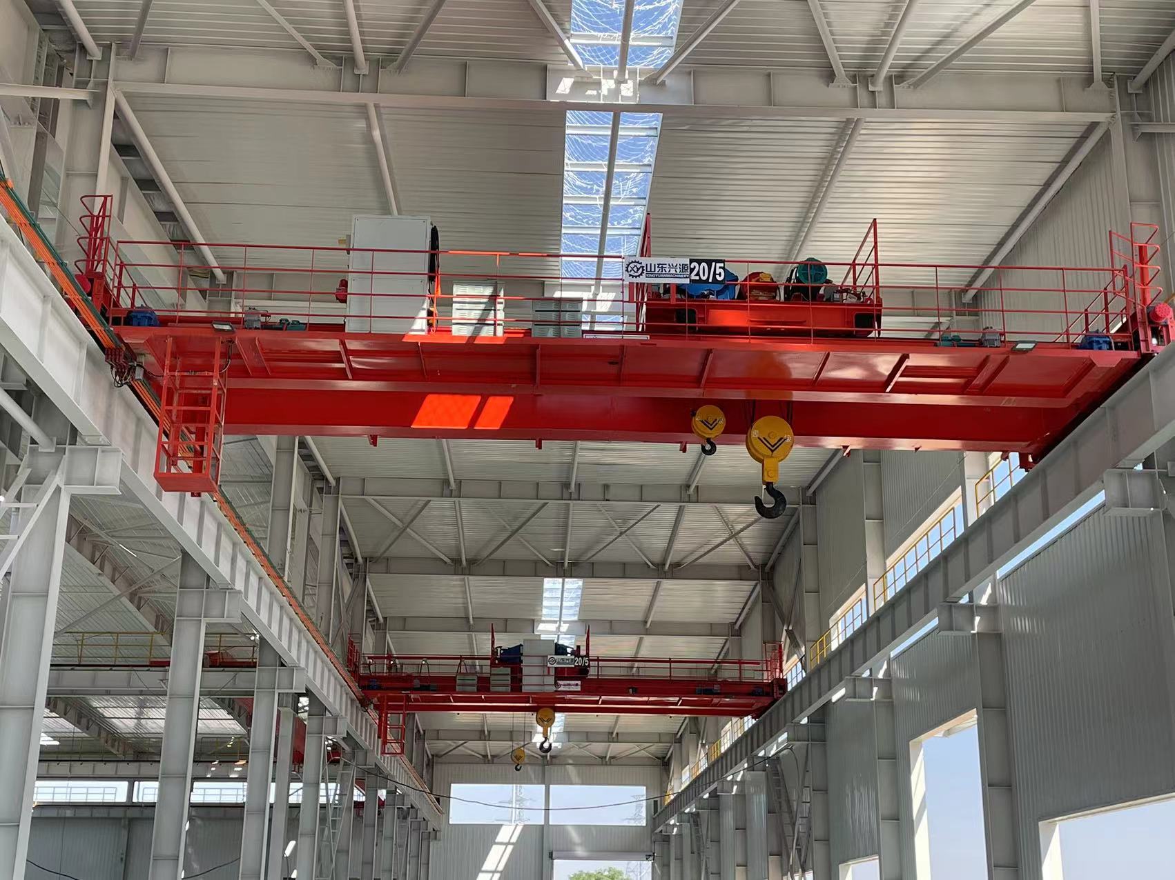 電動雙梁橋式起重機,主要由橋架、大車運行機構、小車、電器設備等組成,該起重機動作操縱可在駕駛室空中操作,亦可采用*地面操作。
