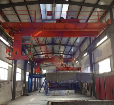 是橋架兩端通過運行裝置直接支撐在高架軌道上的橋架型起重機。它由橋架(包括主梁和端梁)、起重小車、大車運行機構和電氣控制系統等部分組成。起重小車上裝有起升機構和小車運行機構在橋架主梁上沿小車軌道橫向運行;起重機沿廠房或露天貨場的高架軌道縱向運行,其掛梁方向分為與主梁平行和與主梁垂直兩種,并在掛梁下方裝有電磁吸盤,通過電磁吸盤完成物料搬運工作