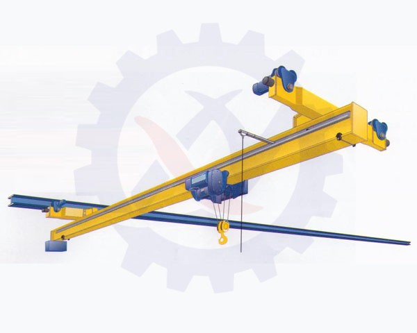 與CD?、MD?型電動葫蘆配套使用,構成有軌運行的單梁起重機。該懸掛起重機的運行軌道使用用工字鋼,主梁兩端懸掛于工字鋼下方前后運行,是小噸位起重設備。